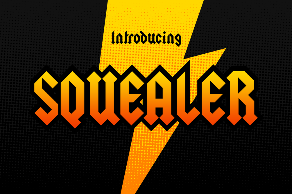 Squealer Font$5+$5+https://schema.org/InStockusdMZKNMZKNSquealer is a hard-rock black letter headliner, perfect for edgy displays. Name a fair price:$Add to cartSize67.1 KBAdd to wishlist New wishlistShareShare on XShare on Facebook Copy linkCopy product URL